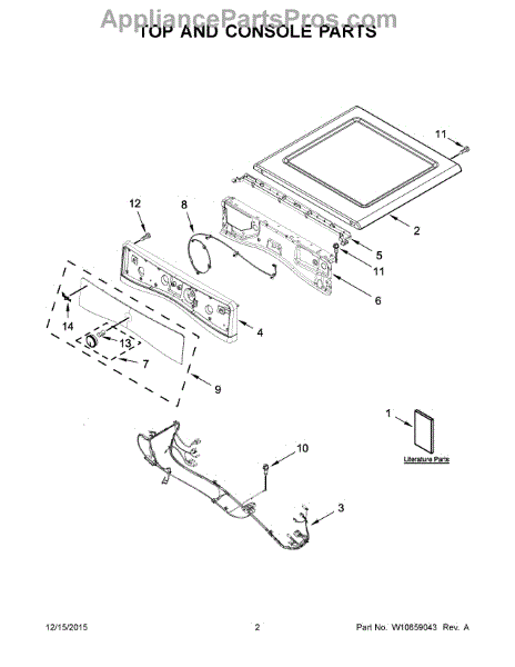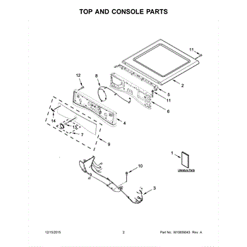Control console assembly for dryers. Mounts on top of the dryer cabinet and houses the control panel. Replace if cracked, damaged, or broken.