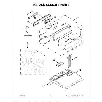 The Console Clip is an OEM part compatible with Whirlpool dryers. This clip secures the control console assembly to the top panel, ensuring it is firmly mounted during operation. Properly functioning clips are necessary to maintain the correct alignment of controls and prevent detachment.
