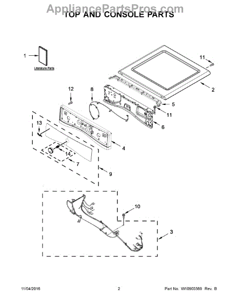 Console shell replaces the dryer's outer control housing to restore a clean, secure surface for the control assembly and controls. It repairs cosmetic damage while providing the proper mounting surface for the control components. What it does: