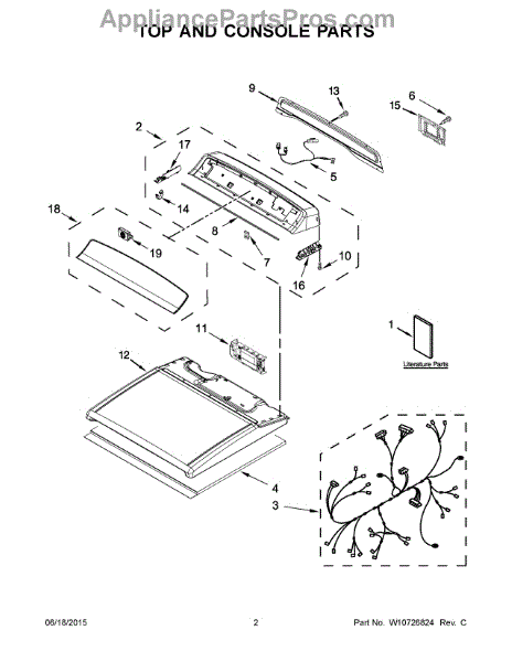 The Top is an OEM replacement part for Whirlpool dryers. It serves as the protective cover for the top of the dryer, keeping dust and debris out while providing a finished look. It is designed to withstand the demands of daily use and provides a sturdy surface for placing items on top of the dryer.