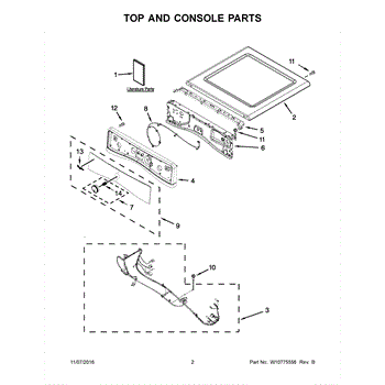 This top panel is the upper cover of your dryer's cabinet. Replace a dented, rusted, or warped panel to restore a secure, flush fit and the clean, finished look of your machine.