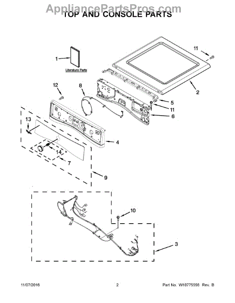 This top panel is the upper cover of your dryer's cabinet. Replace a dented, rusted, or warped panel to restore a secure, flush fit and the clean, finished look of your machine.