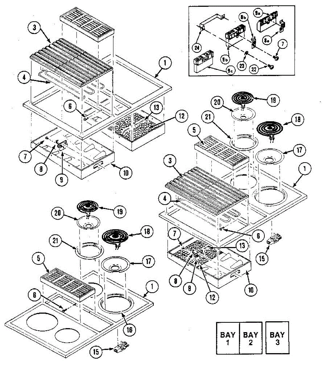 Secures cooktop panels and components to eliminate rattling and maintain alignment. Replace when worn clips allow movement or vibration. Confirm fit with your model.