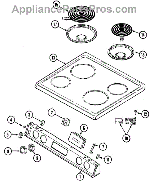 Drip pan installs beneath burner elements to catch spills and crumbs. Replace if cracked, rusted, stained, or worn. Keeps your stovetop clean.
