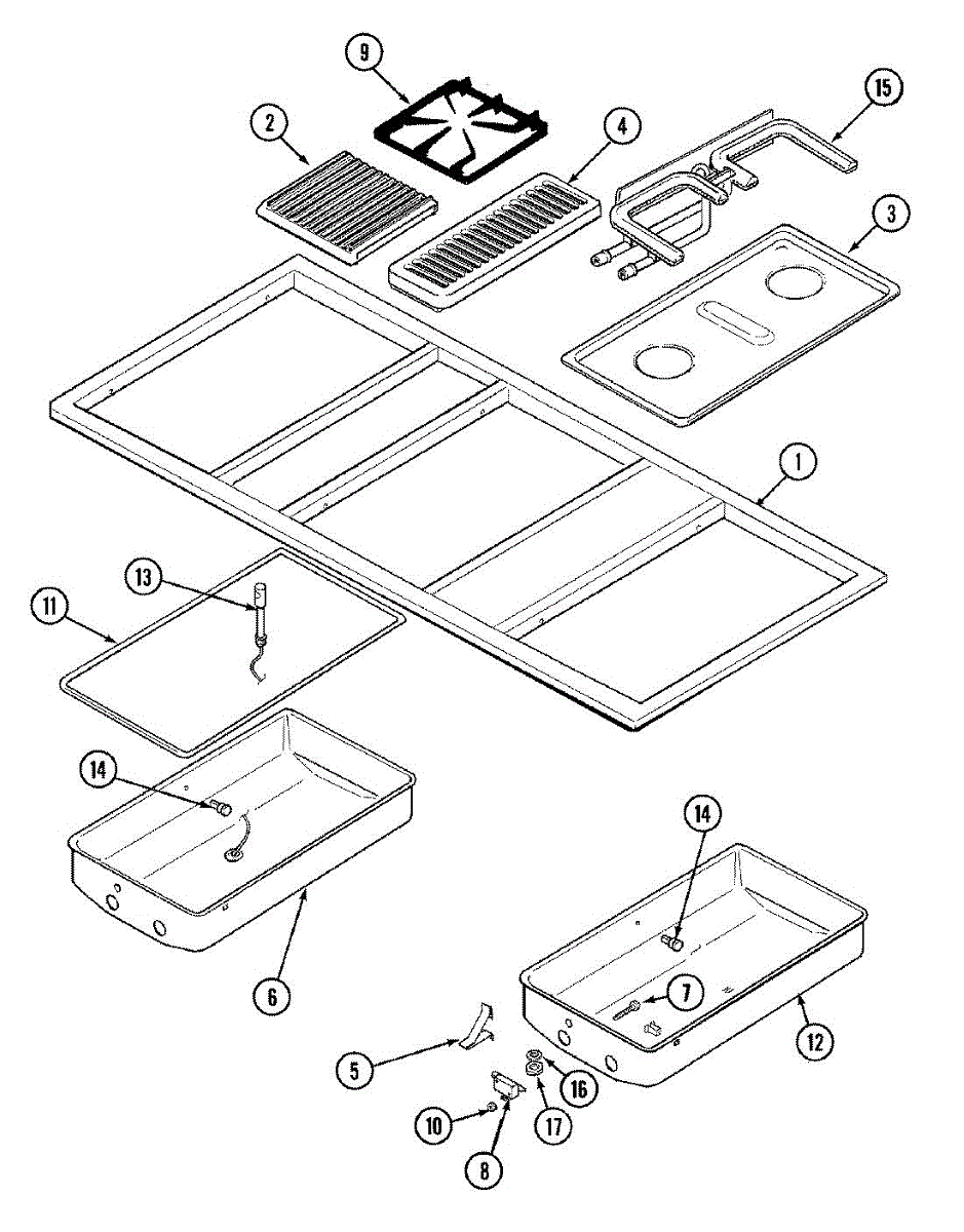 This genuine OEM part is a cooktop grill burner. The grill burner is the component part that allows the gas flame to spark so that the stove can perform its job of cooking and heating. If the stove burners are no longer producing a flame or not turning on at all, it might be time to replace the grill burner. Luckily this is a relatively simple repair.To start, make sure that all power to the stove has been turned off by either unplugging the appliance or shutting off the circuit breaker. Close the shut off valve on the propane gas tank. Remove the cooking grate and the flame tamer from the top of the damaged burner. Pull the cotter pin out of the back of the burner. Remove the burner mounting screws. Pull the burner back then up to remove it from the manifold and remove the burner. Place the new burner into the manifold and fasten the mounting screws. Reinstall the cotter pin and flame tamer and restore the gas and power back to the appliance.This replacement part is sold individually and is compatible with Whirlpool, Maytag, KitchenAid, Jenn-Air, Amana, Magic Chef, Admiral, Norge, Roper, and Sears/Kenmore brand stoves.