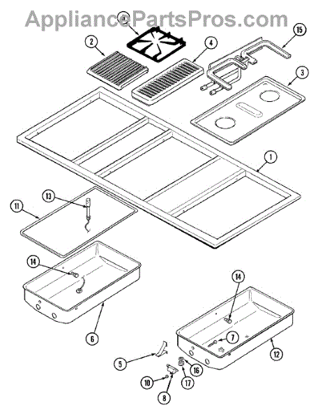 This genuine OEM part is a cooktop grill burner. The grill burner is the component part that allows the gas flame to spark so that the stove can perform its job of cooking and heating. If the stove burners are no longer producing a flame or not turning on at all, it might be time to replace the grill burner. Luckily this is a relatively simple repair.To start, make sure that all power to the stove has been turned off by either unplugging the appliance or shutting off the circuit breaker. Close the shut off valve on the propane gas tank. Remove the cooking grate and the flame tamer from the top of the damaged burner. Pull the cotter pin out of the back of the burner. Remove the burner mounting screws. Pull the burner back then up to remove it from the manifold and remove the burner. Place the new burner into the manifold and fasten the mounting screws. Reinstall the cotter pin and flame tamer and restore the gas and power back to the appliance.This replacement part is sold individually and is compatible with Whirlpool, Maytag, KitchenAid, Jenn-Air, Amana, Magic Chef, Admiral, Norge, Roper, and Sears/Kenmore brand stoves.