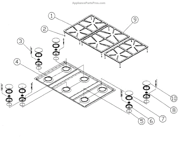 • Remove grates, burner caps, and the burner head to access the O-ring; note the original orientation.