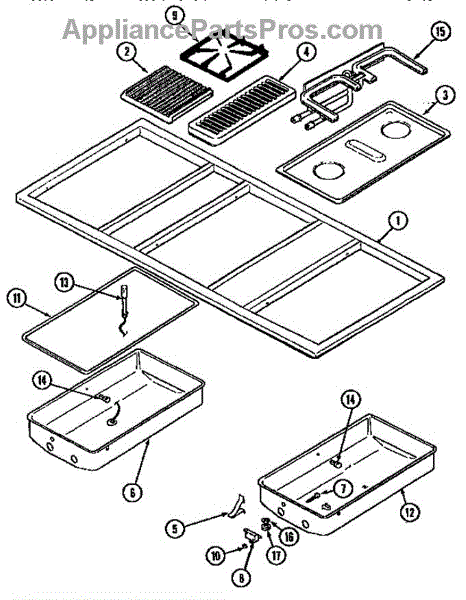 This genuine OEM part is a cooktop grill burner. The grill burner is the component part that allows the gas flame to spark so that the stove can perform its job of cooking and heating. If the stove burners are no longer producing a flame or not turning on at all, it might be time to replace the grill burner. Luckily this is a relatively simple repair.To start, make sure that all power to the stove has been turned off by either unplugging the appliance or shutting off the circuit breaker. Close the shut off valve on the propane gas tank. Remove the cooking grate and the flame tamer from the top of the damaged burner. Pull the cotter pin out of the back of the burner. Remove the burner mounting screws. Pull the burner back then up to remove it from the manifold and remove the burner. Place the new burner into the manifold and fasten the mounting screws. Reinstall the cotter pin and flame tamer and restore the gas and power back to the appliance.This replacement part is sold individually and is compatible with Whirlpool, Maytag, KitchenAid, Jenn-Air, Amana, Magic Chef, Admiral, Norge, Roper, and Sears/Kenmore brand stoves.