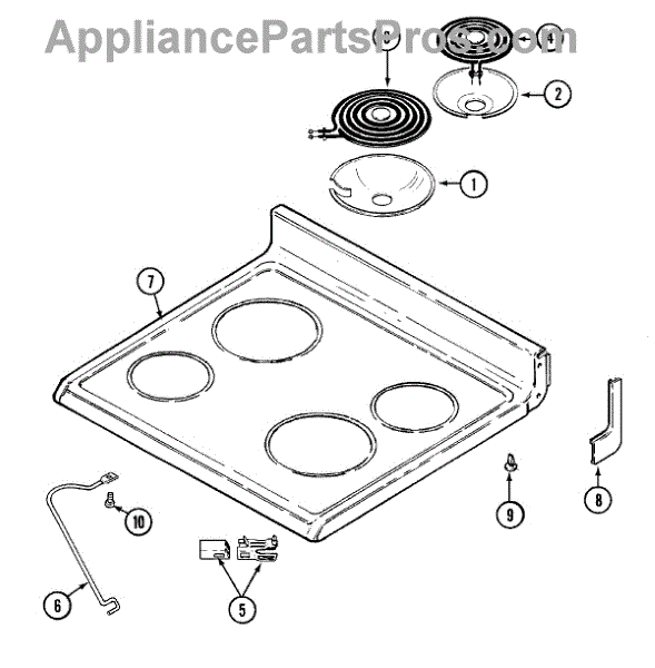 This 6-inch radiant surface element is the heating source for a small burner beneath a glass-ceramic cooktop. Replacing a failed element restores reliable, controllable heat to that cooking zone. What it does: