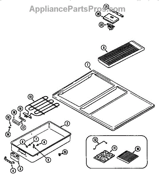 This rock plate support is used on many of the Jenn-air grill cartridge rock plates.