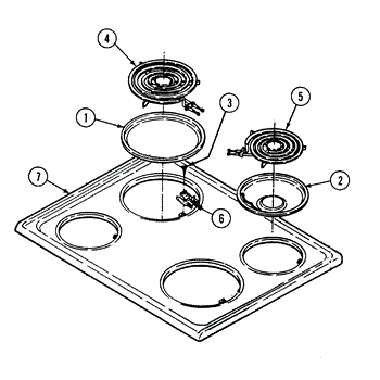Shallow metal drip pan installs below burner elements to catch grease and spills. Replace when discolored, rusted, warped, or damaged for a clean cooktop.