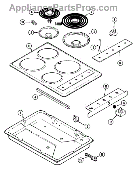 The Stove Top Drip Pan is an OEM replacement part for Whirlpool ranges. It is the shallow metal pan located below the stove burner elements that collects grease and food particles. The drip pan helps direct spills and drips away from the burner area to the bottom drawer for easy cleanup.