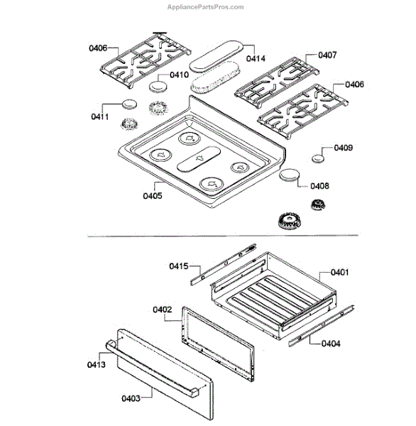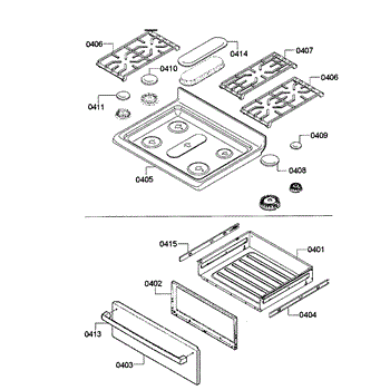 Parts for Bosch HGS5053UC/12: Top Assembly / Drawer Parts