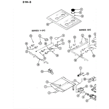 For top surface burners. Configuration: 2 + 0.