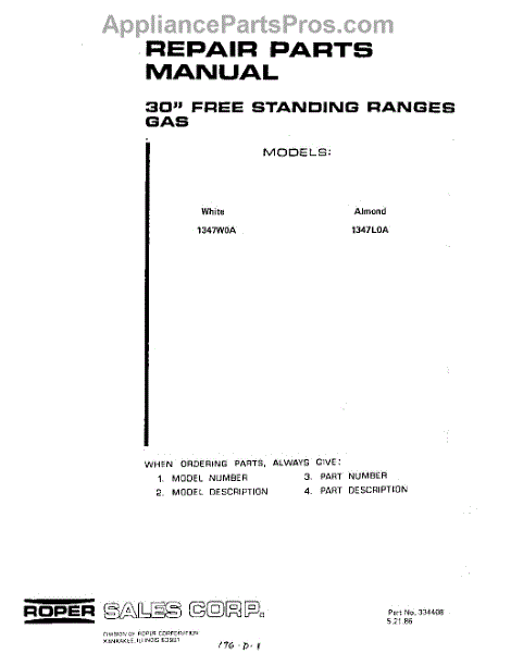 Roper Range Parts