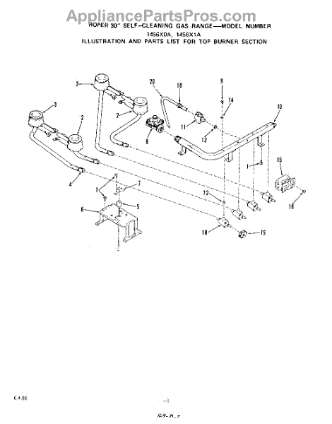 Parts for Roper 1456X0A: 02 - Top Burner Parts