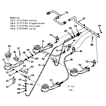 Parts for Kenmore 103.7737160 (1037737160, 103 7737160): Top Burner Section Parts