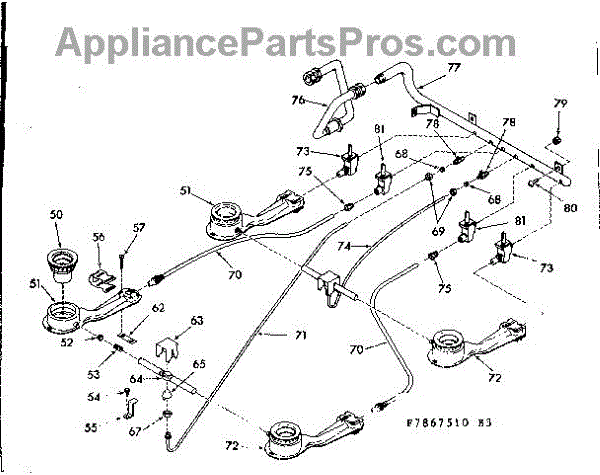 Parts for Kenmore 103.7867520 (1037867520, 103 7867520): Top Burner Section Parts