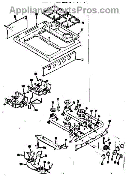 Parts for Kenmore 119.7246740 (1197246740, 119 7246740): Top Burner Section Parts