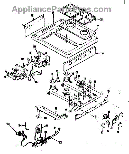 Parts for Kenmore 119.7246800 (1197246800, 119 7246800): Top Burner Section Parts