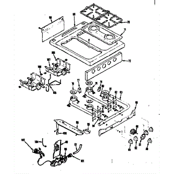 Parts for Kenmore 119.7246840 (1197246840, 119 7246840): Top Burner Section Parts