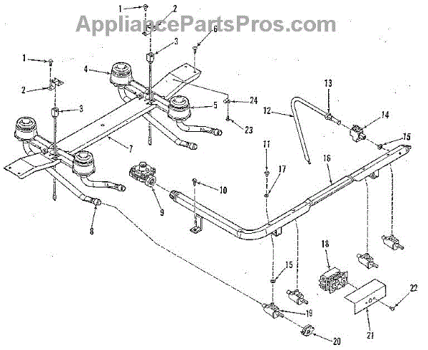 Parts for Kenmore 911.7340190 (9117340190, 911 7340190): Top Burner Section Parts