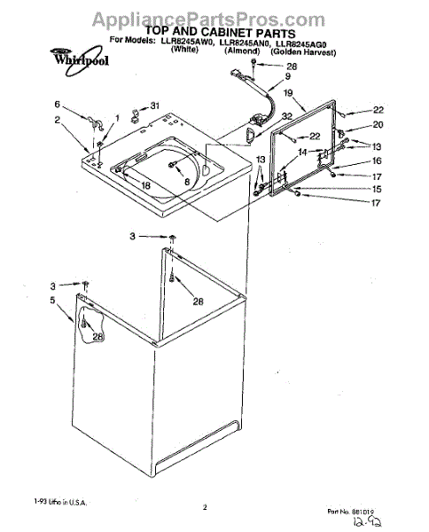 Repair manual for top loading automatic direct drive washing machines made by Whirlpool. Covered brands include Whirlpool, Sears, Kenmore, Kitchen Aid, Roper, and Estate. Easy to follow photographs and step-by-step repair procedures.