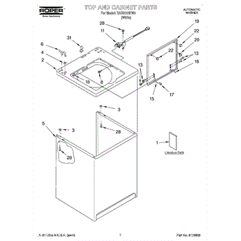 The Washer Lid Screw is an OEM part for Whirlpool washing machines. This 6-32 x .340 screw secures the washer lid to the hinge assembly, ensuring the lid opens and closes smoothly and stays securely in place during operation.