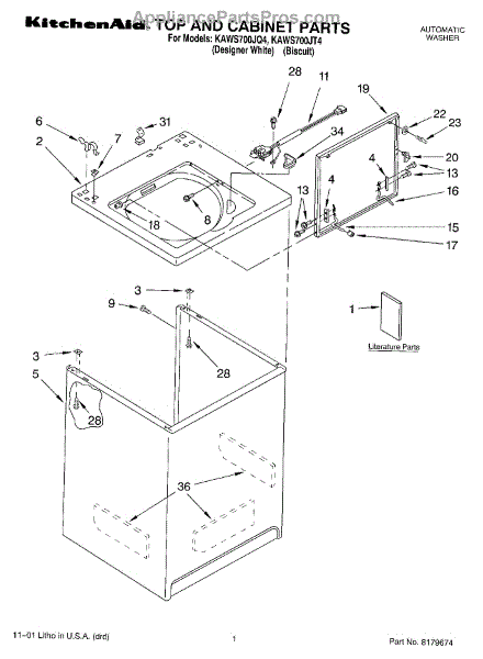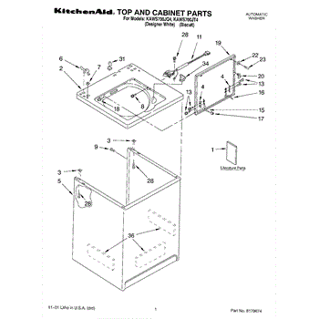 White outer cabinet shell for your washer. Covers the internal components and frame. Replace if cracked, dented, rusted, or cosmetically damaged.