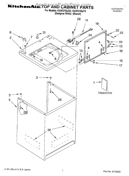Used to lock washer cabinet to rear wall of washer.