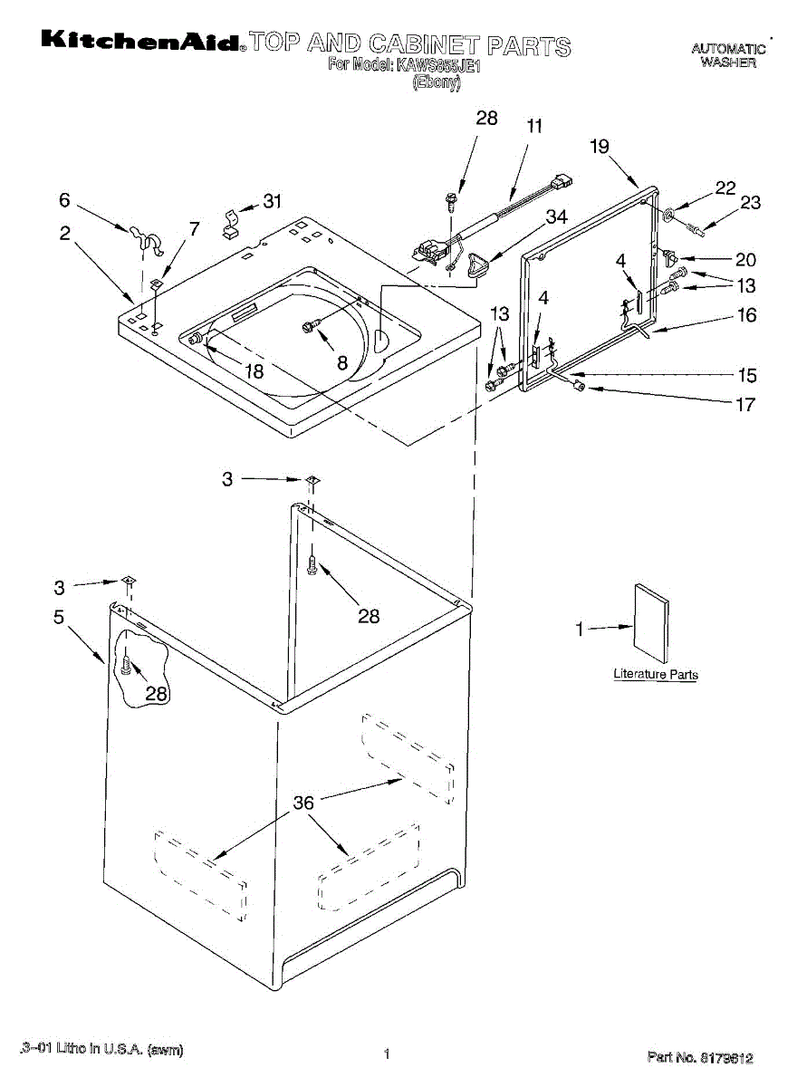 The Washer Lid Screw is an OEM part for Whirlpool washing machines. This 6-32 x .340 screw secures the washer lid to the hinge assembly, ensuring the lid opens and closes smoothly and stays securely in place during operation.