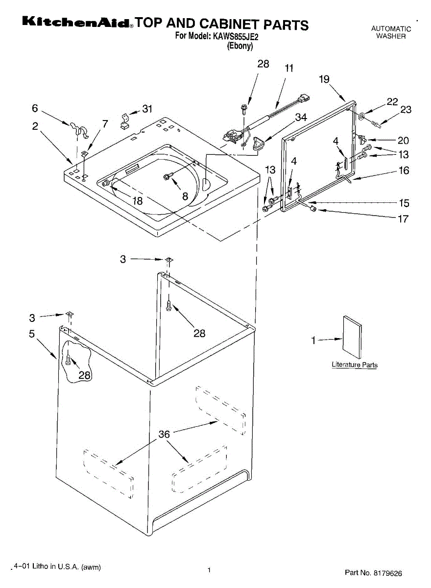 The Washer Lid Screw is an OEM part for Whirlpool washing machines. This 6-32 x .340 screw secures the washer lid to the hinge assembly, ensuring the lid opens and closes smoothly and stays securely in place during operation.