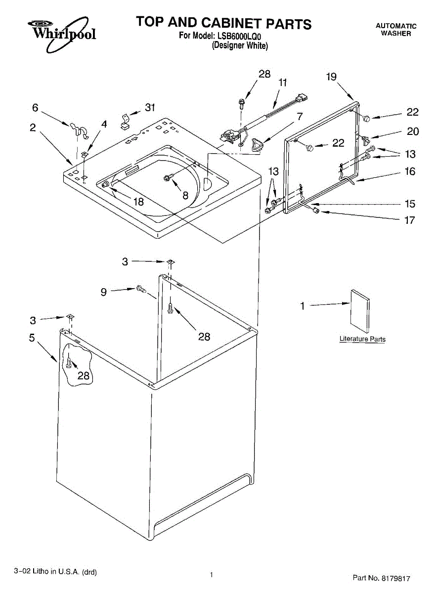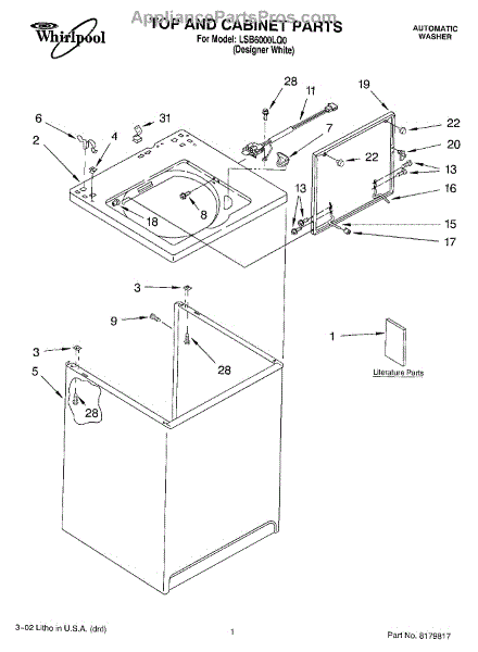 Repair manual for top loading automatic direct drive washing machines made by Whirlpool. Covered brands include Whirlpool, Sears, Kenmore, Kitchen Aid, Roper, and Estate. Easy to follow photographs and step-by-step repair procedures.
