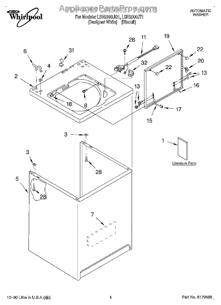 Repair manual for top loading automatic direct drive washing machines made by Whirlpool. Covered brands include Whirlpool, Sears, Kenmore, Kitchen Aid, Roper, and Estate. Easy to follow photographs and step-by-step repair procedures.