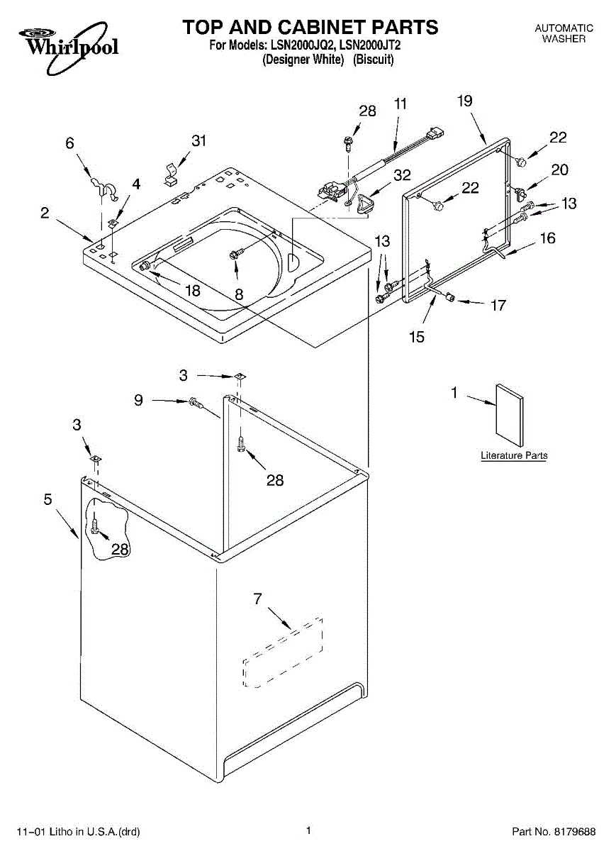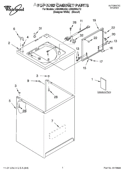 Repair manual for top loading automatic direct drive washing machines made by Whirlpool. Covered brands include Whirlpool, Sears, Kenmore, Kitchen Aid, Roper, and Estate. Easy to follow photographs and step-by-step repair procedures.