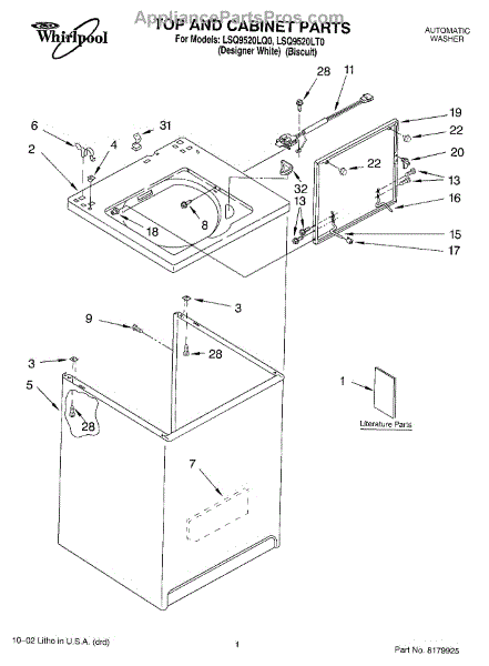 Repair manual for top loading automatic direct drive washing machines made by Whirlpool. Covered brands include Whirlpool, Sears, Kenmore, Kitchen Aid, Roper, and Estate. Easy to follow photographs and step-by-step repair procedures.