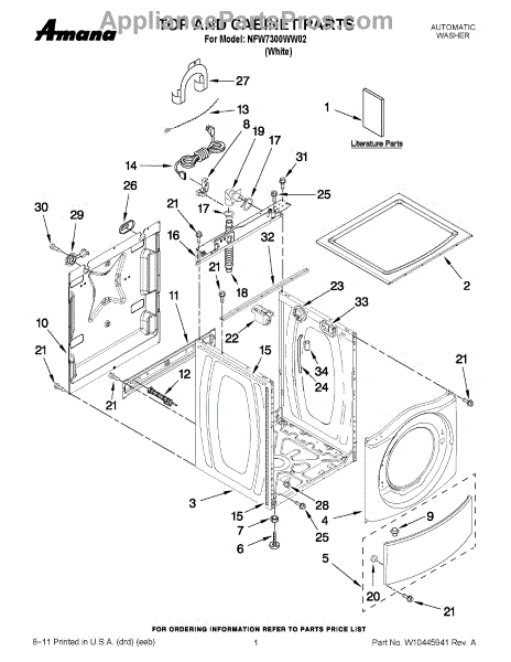 Parts for Amana NFW7300WW02: 01 - Top And Cabinet Parts