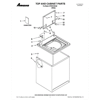 Used to lock washer cabinet to rear wall of washer.