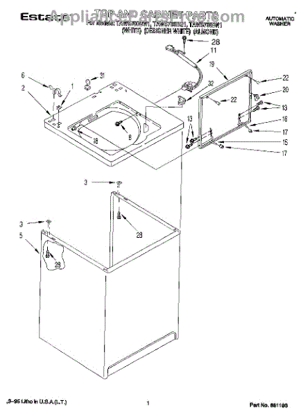 Parts for Estate TAWS700BW1: 01 - Top And Cabinet, Lit / Optional Parts