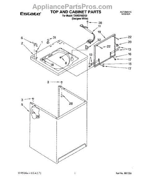 Used to lock washer cabinet to rear wall of washer.