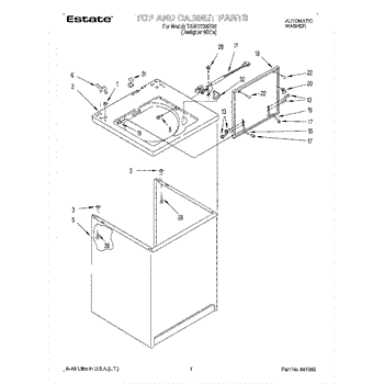 The Washer Lid Screw is an OEM part for Whirlpool washing machines. This 6-32 x .340 screw secures the washer lid to the hinge assembly, ensuring the lid opens and closes smoothly and stays securely in place during operation.