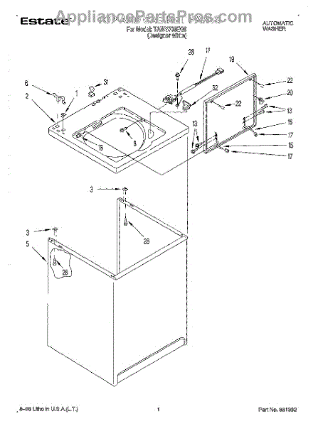 Used to lock washer cabinet to rear wall of washer.