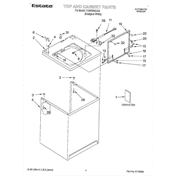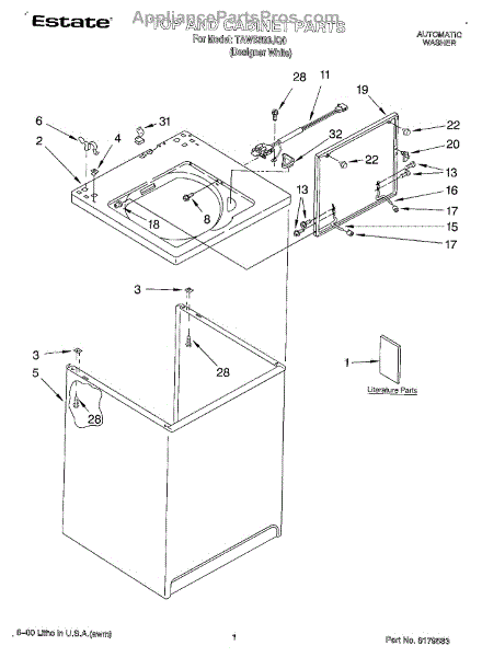 The Washer Lid Screw is an OEM part for Whirlpool washing machines. This 6-32 x .340 screw secures the washer lid to the hinge assembly, ensuring the lid opens and closes smoothly and stays securely in place during operation.