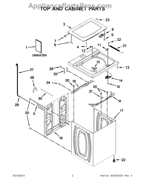 This cabinet is the main outer housing that supports and protects the appliance's internal components while giving the unit its finished exterior. It restores structural integrity and proper panel alignment for safe, reliable operation. What it does: