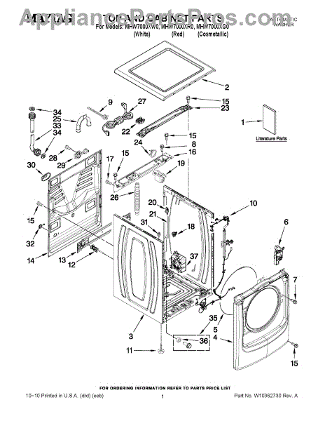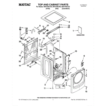 Parts for Maytag MHW7000XR0: 01 - Top And Cabinet Parts