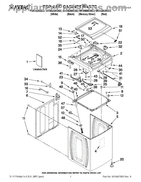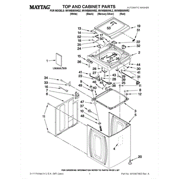 Parts for Maytag MVWB850WB2: 01 - Top And Cabinet Parts