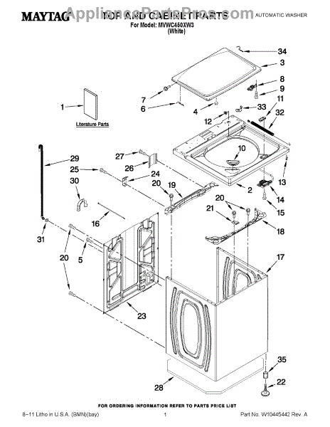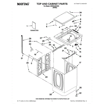 Parts for Maytag MVWC450XW3: 01 - Top And Cabinet Parts