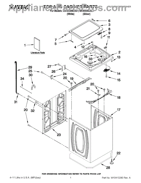 This replacement lid restores the top cover of a top-load washer, protecting the wash tub and providing a finished appearance. It's a direct-fit exterior part designed to replace a damaged or missing lid. What it does: