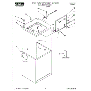 The Washer Lid Screw is an OEM part for Whirlpool washing machines. This 6-32 x .340 screw secures the washer lid to the hinge assembly, ensuring the lid opens and closes smoothly and stays securely in place during operation.