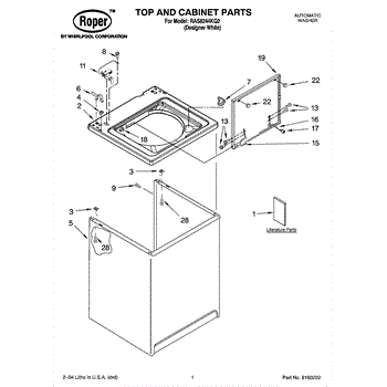 Parts for Roper RAS8244KQ2: 01 - Top And Cabinet Parts